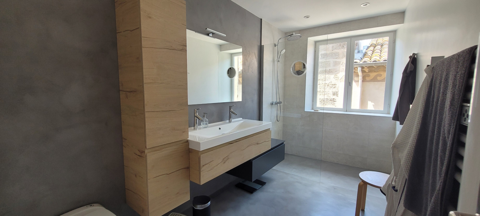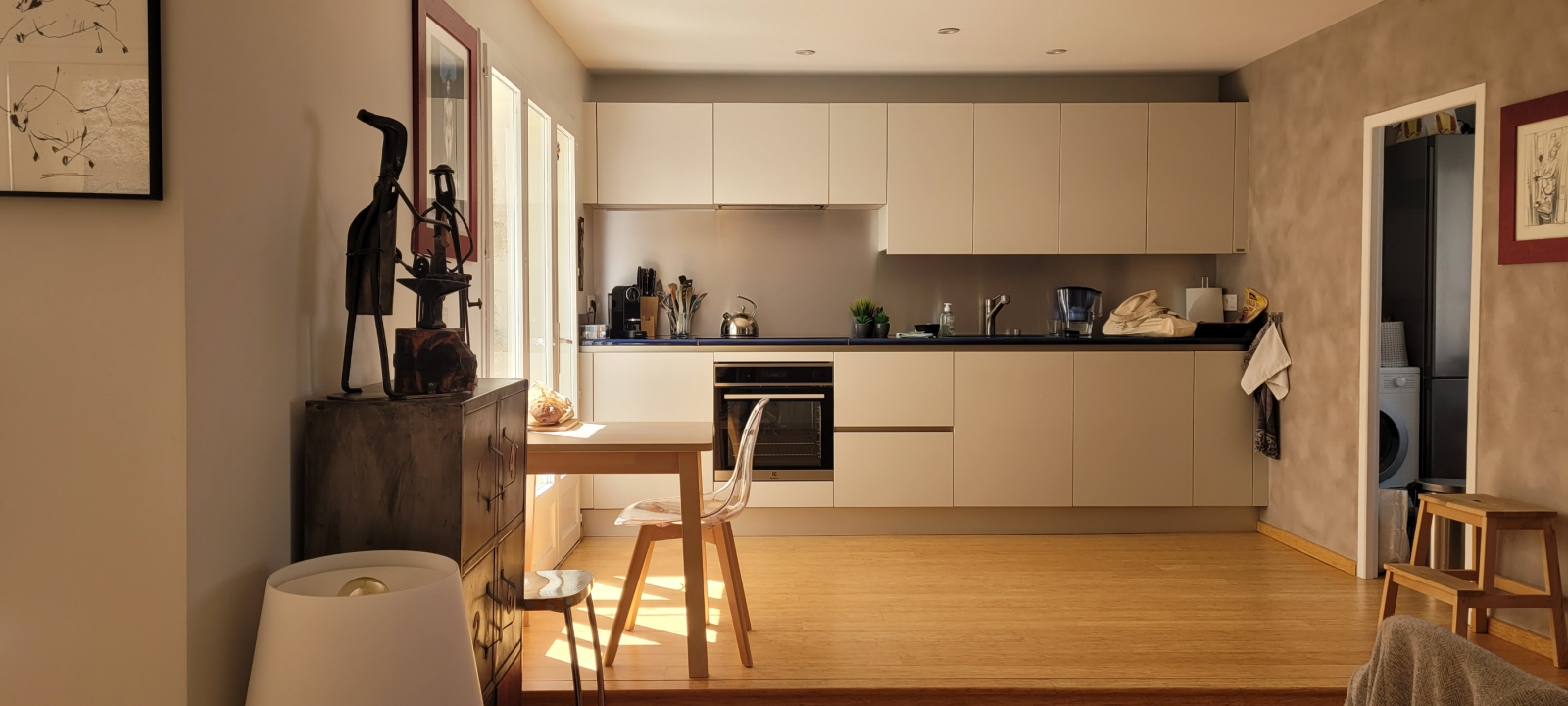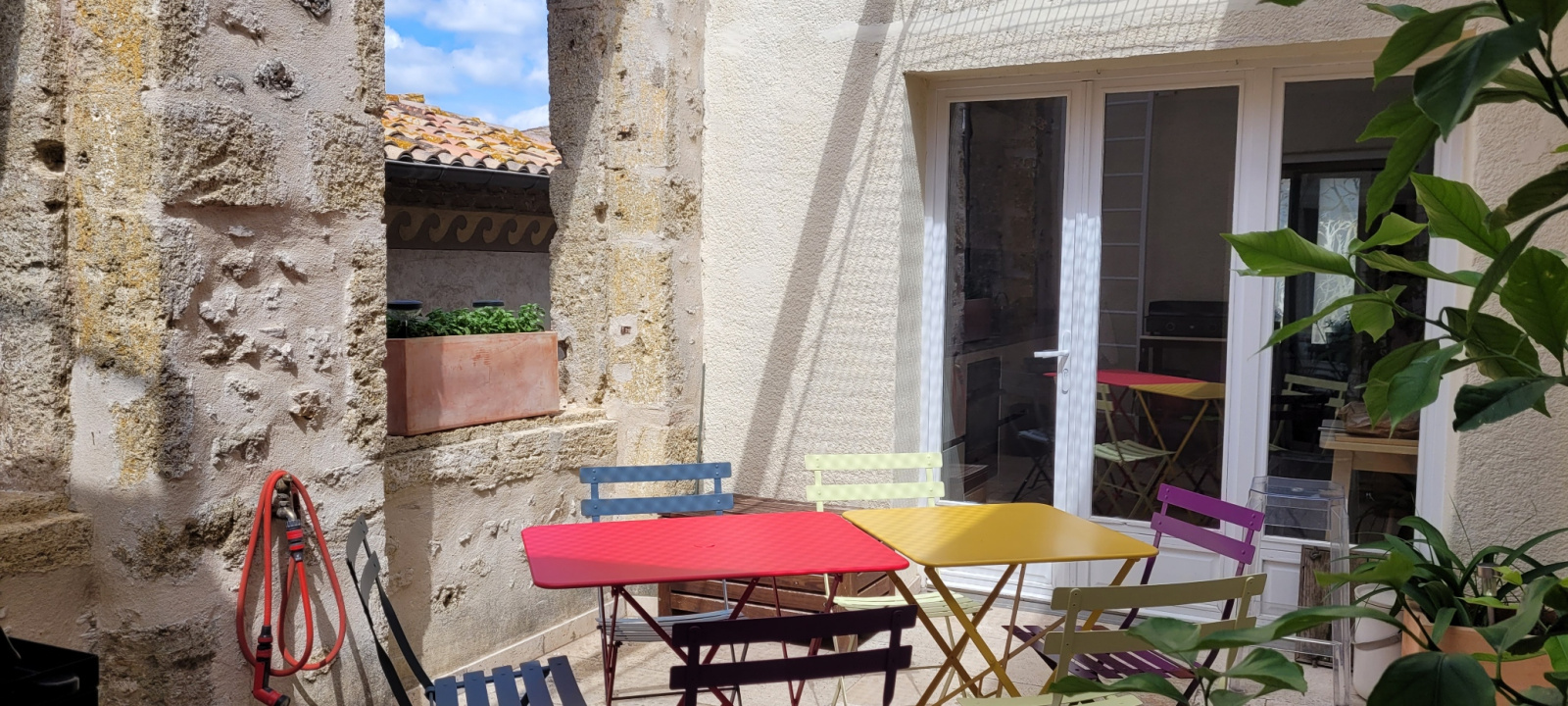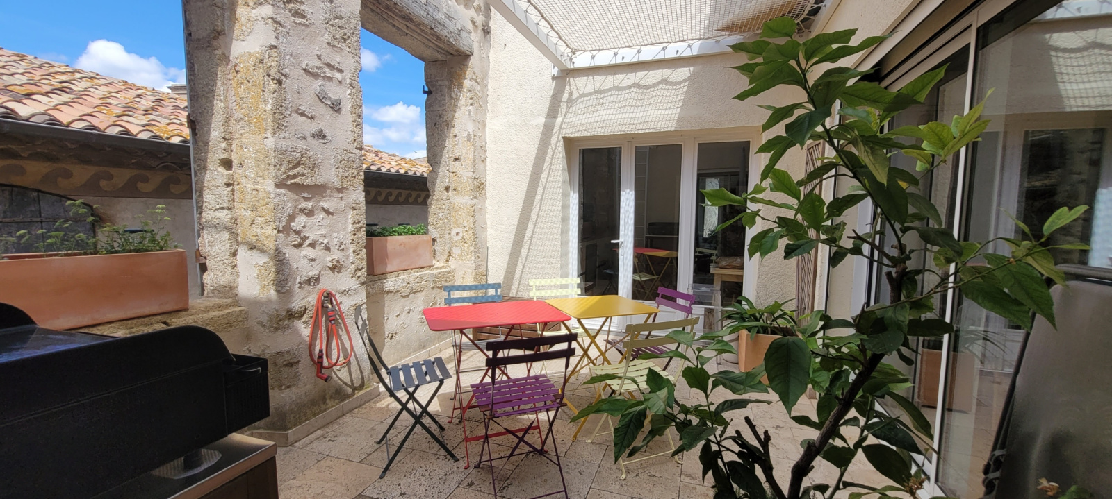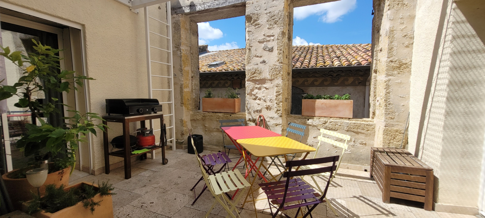 SES NOMBREUX ATOUTS: sa situation en centre-ville dans une rue calme et proche de tout, sa belle terrasse sans vis-à-vis, sa luminosité, sa décoration très soignée, ses matériaux de qualité, ses beaux volumes, pompe à chaleur, climatisation réversible, le double vitrage et en prime: pas de logement au-dessus, juste un grenier!
