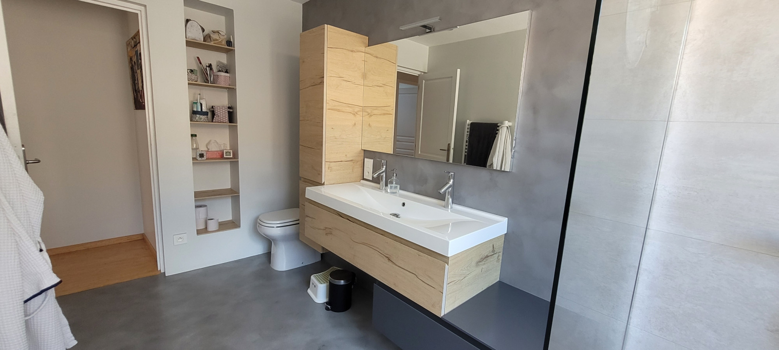 Au même niveau, l'espace nuit n'est pas en reste avec deux belles chambres avec rangements d'environ 12m² chacune, une salle d'eau spacieuse et moderne, un wc avec lave-mains. Un bureau et une buanderie complètent le tout!