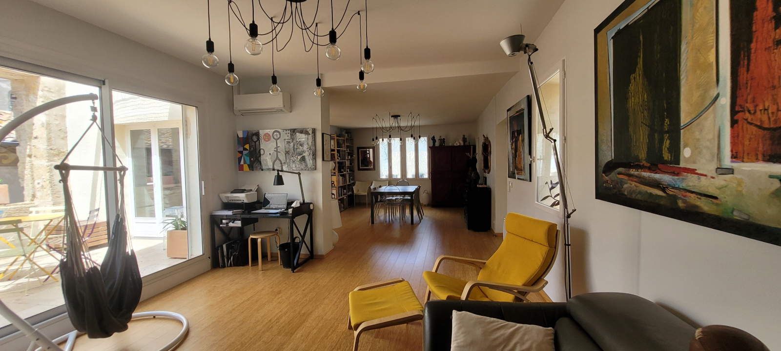 Pézenas (34120)C'est au coeur de PEZENAS, à tout juste quelques pas du Cours Jean Jaurès et du fabuleux centre historique, que se cache ce superbe appartement de plus de 110m² et sa précieuse terrasse d'environ 13m² à l'abri des regards.