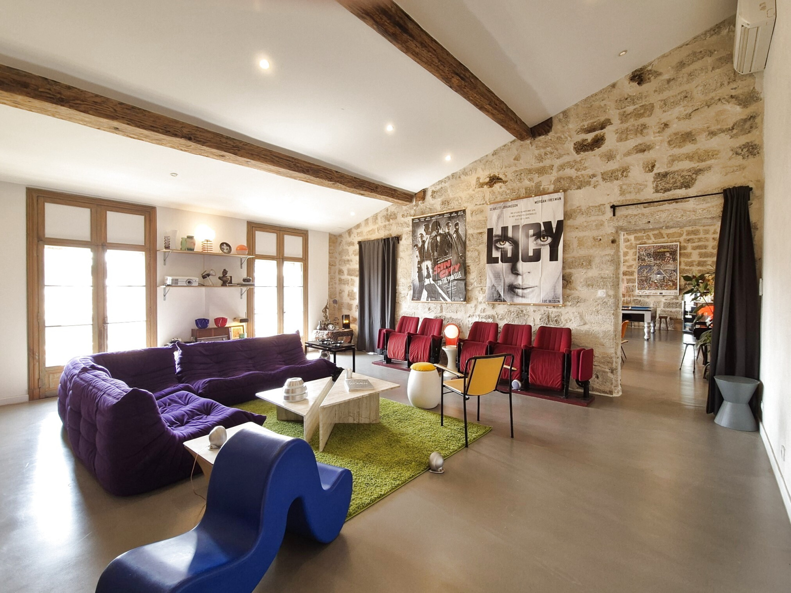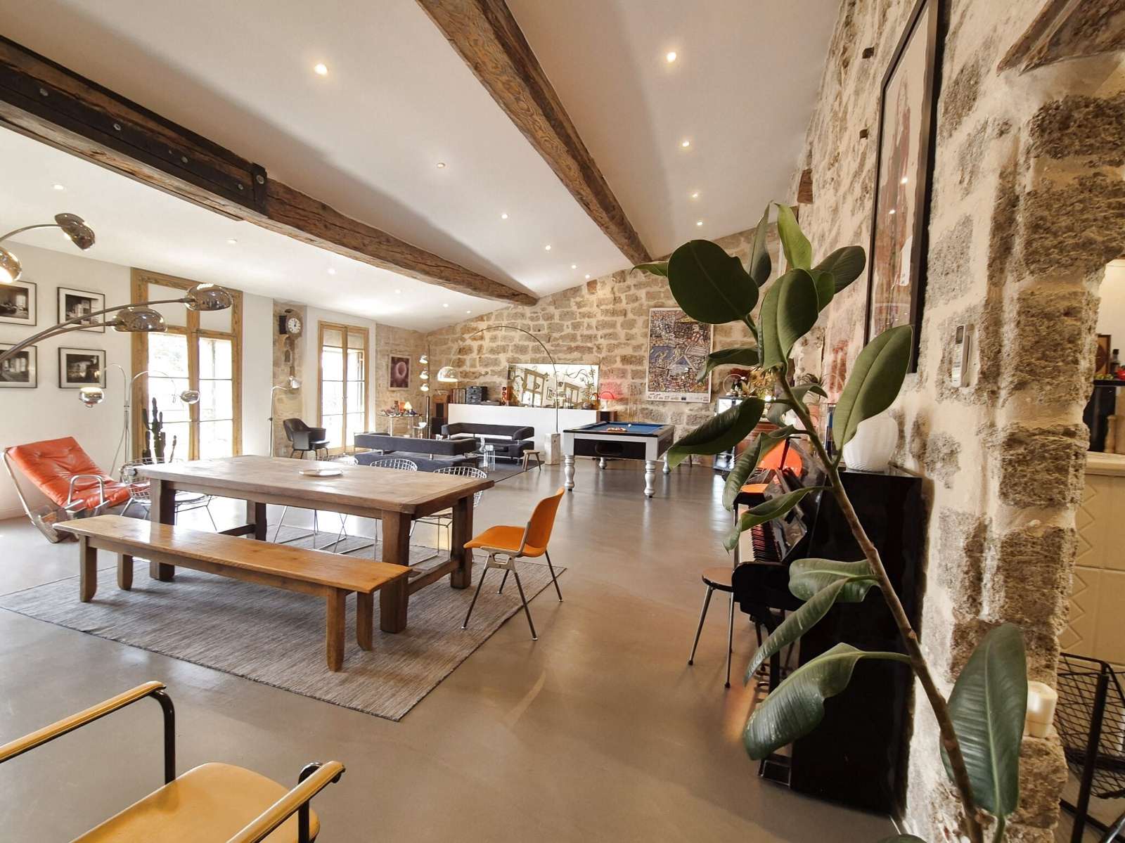 Rénové dans un esprit loft, il procure un très grand espace de vie lumineux et ouvert de pas moins de 150m² incluant une spacieuse cuisine moderne et équipée, un incroyable séjour-salle à manger et un salon plus intime dédié au cinéma.