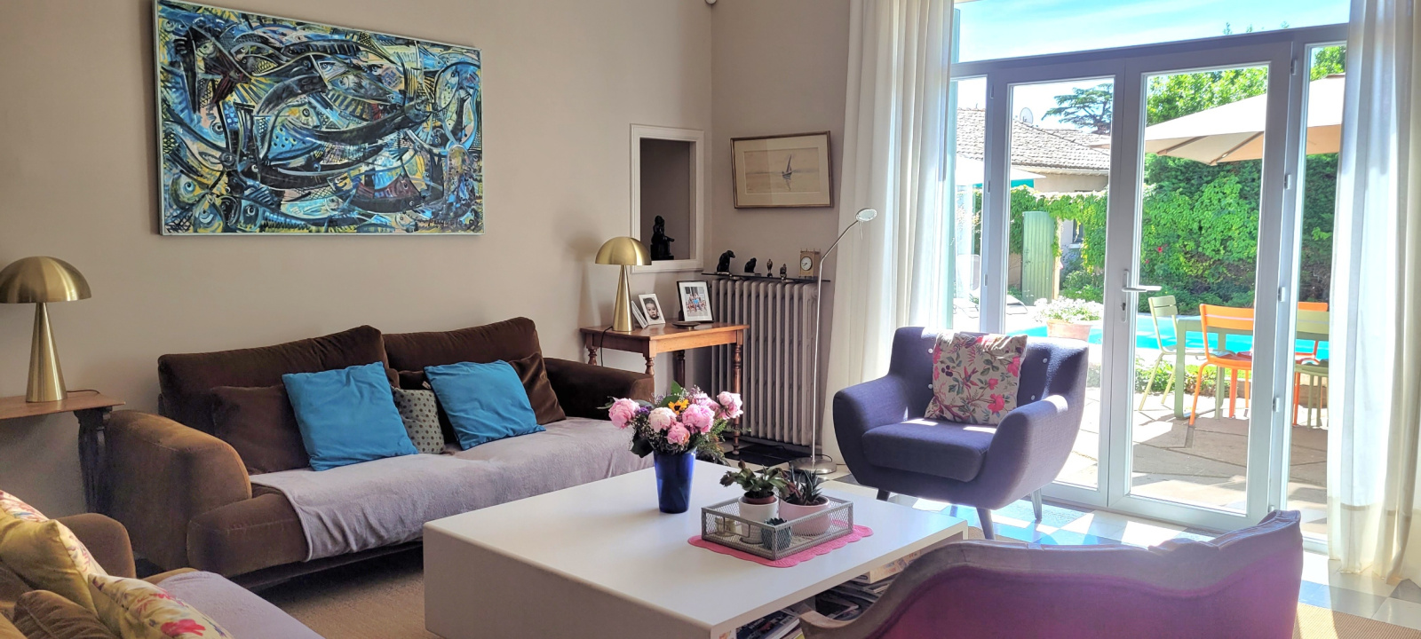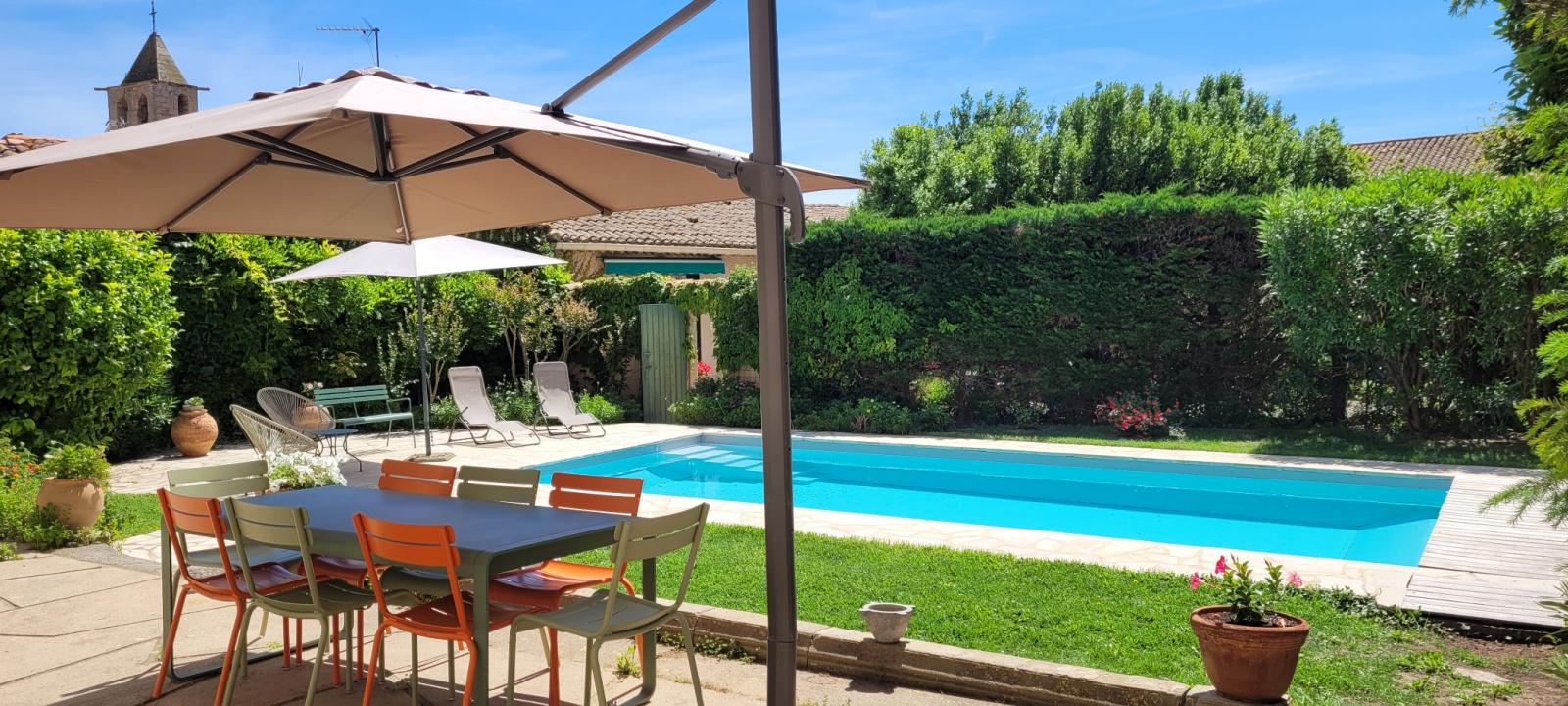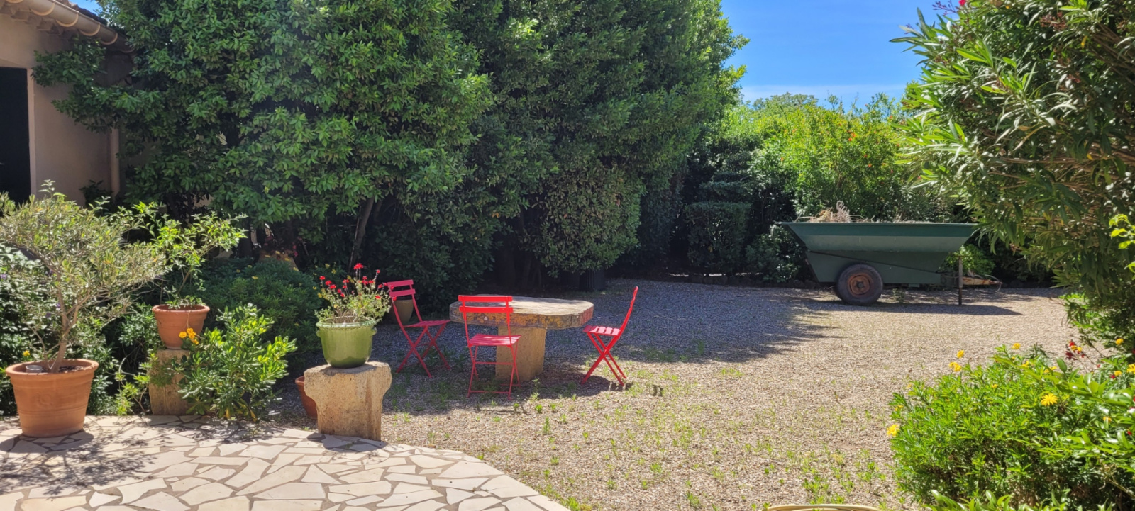 L'extérieur n'est pas en reste avec sa charmante terrasse, et sa belle piscine en PVC armé érigée au milieu d'un jardin arboré d'environ 900m² au fond duquel se cache un logement fonctionnel et climatisé de 90m² environ composé d'une pièce de vie, cuisine indépendante, deux chambres, salle de bain avec wc.