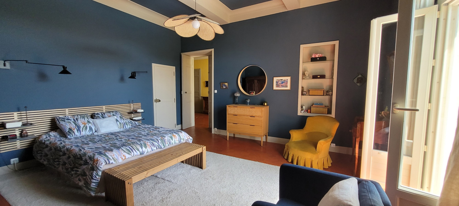 Un magnifique escalier nous mène au 1er étage réservé à l'espace nuit où nous sommes accueillis par un couloir spacieux qui distribue quatre belles chambres de 19 à 27m², une grande salle de bains avec douche, baignoire et wc, et une sublime suite parentale de plus de 27m² et sa salle de bain en suite. Le tout offrant une splendide vue sur le jardin avec les toits du village et le clocher en toile de fond.
