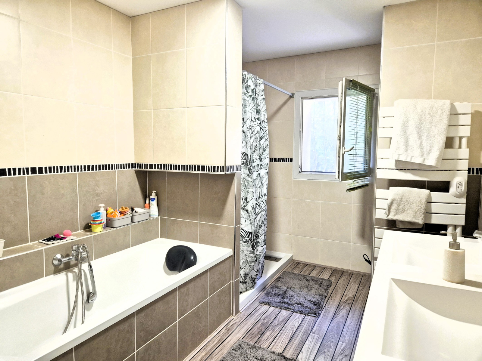 Au-dessus, la maison réserve encore une jolie surprise avec des combles isolés et aménagés, prêts à accueillir un espace de jeu, un bureau, des rangements ou même la tannière secrète d'un adolescent.. Un vrai plus!