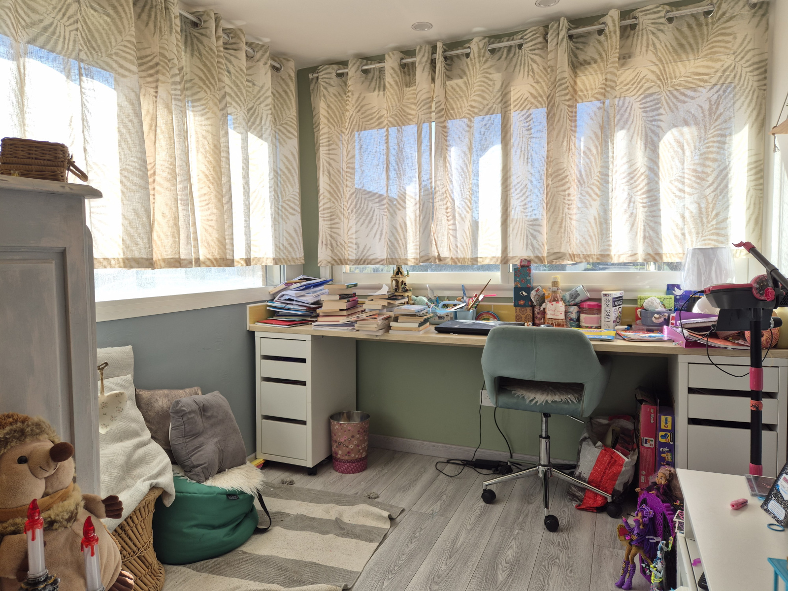 - à l'étage: Une charmante chambre de plus de 16m² accueille un coin nuit et un bel espace bureau, un bureau spacieux, fonctionnel et lumineux, une 3ème chambre de plus de 11m², une salle d'eau et un wc indépendant.