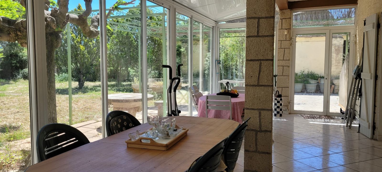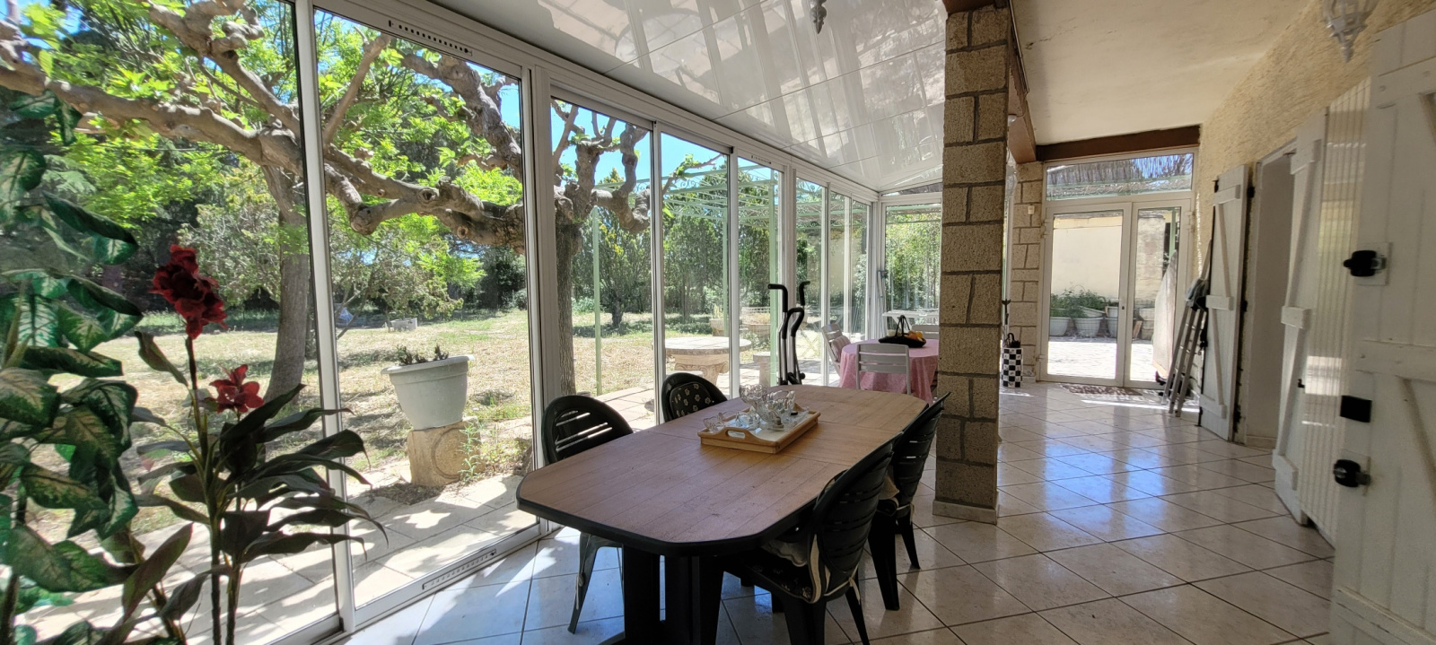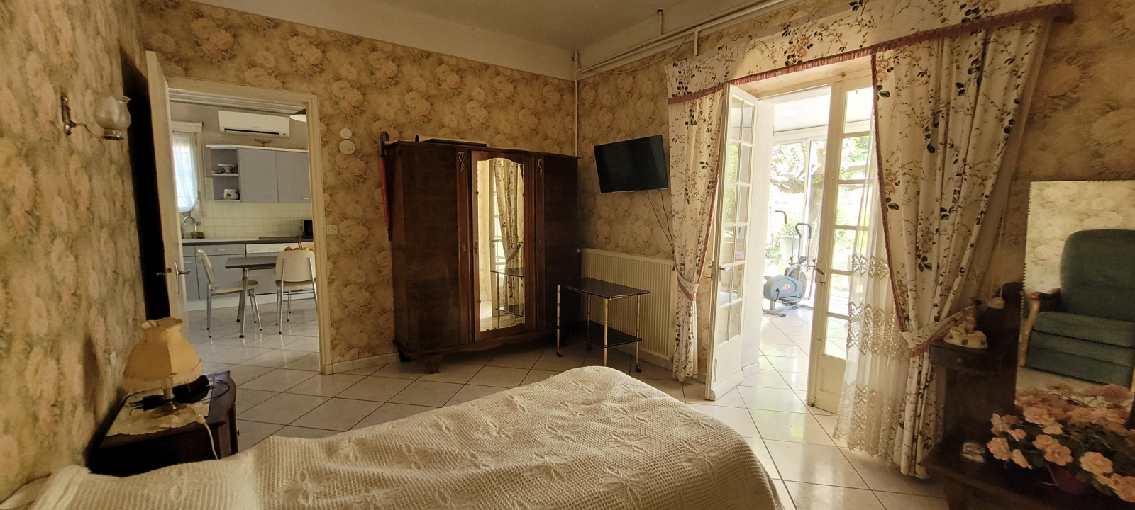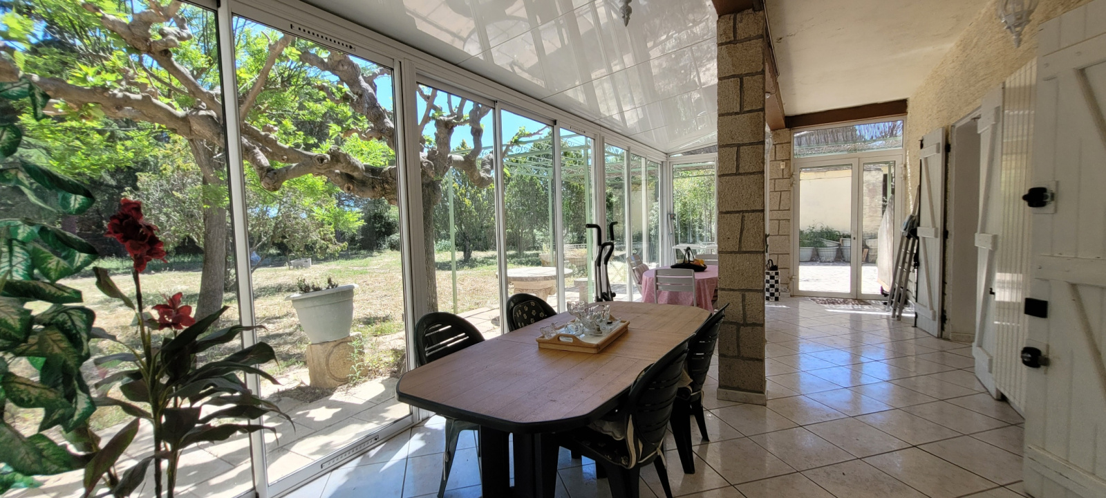 Au rez-de-chaussée, l'appartement indépendant se compose quant à lui d'une belle et spacieuse véranda, d'une cuisine indépendante, d'un salon, d'une chambre, d'une salle d'eau avec wc et placard.