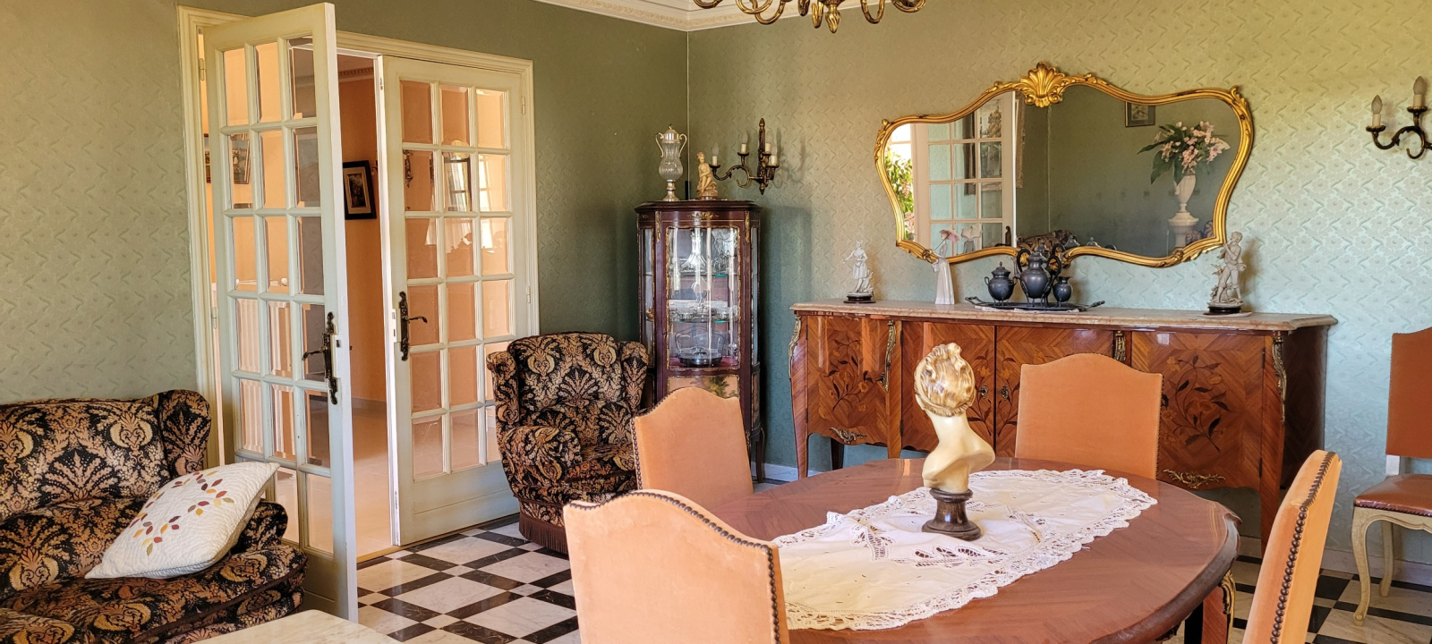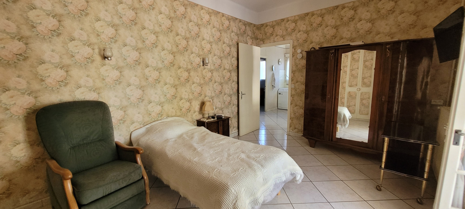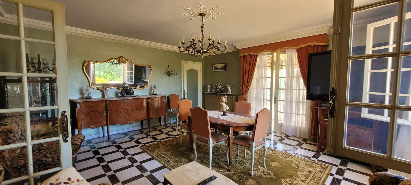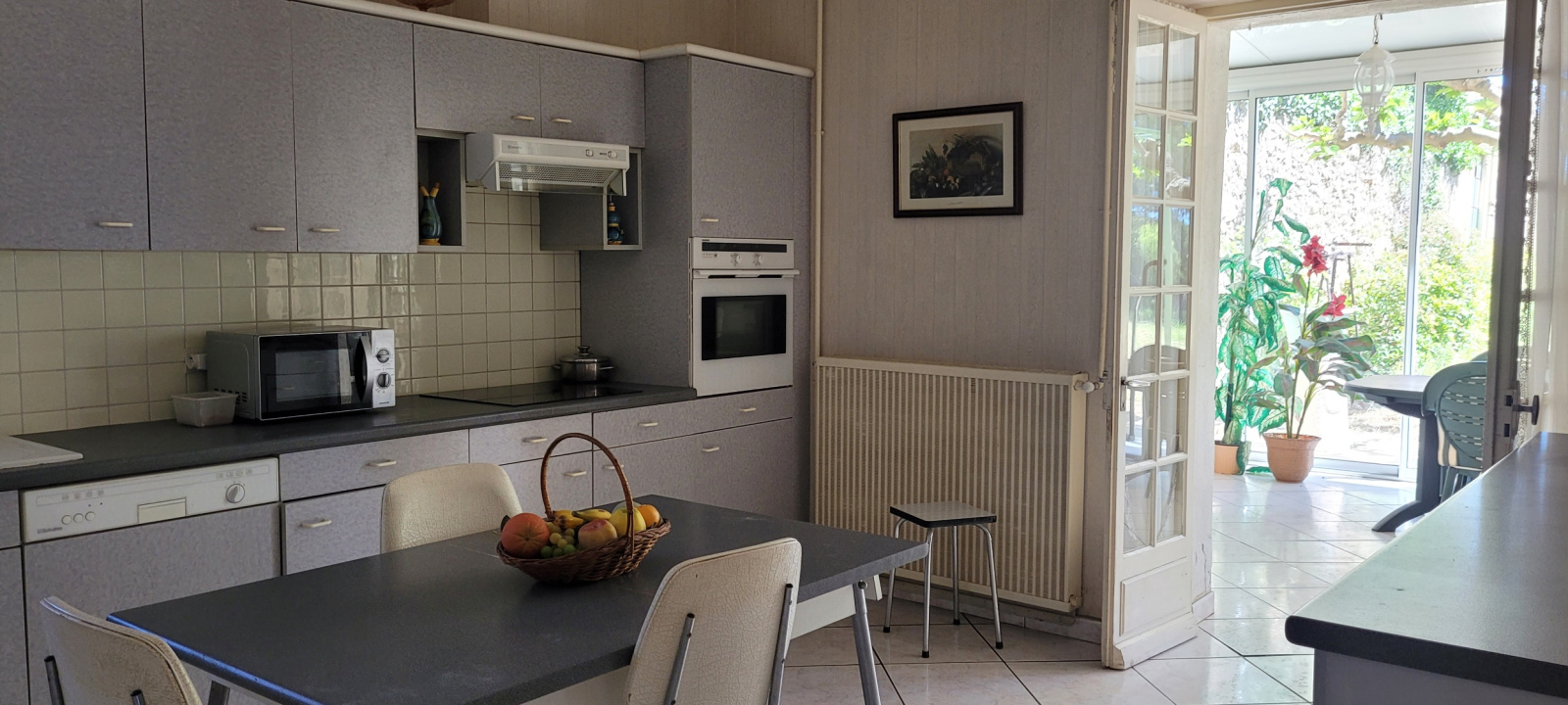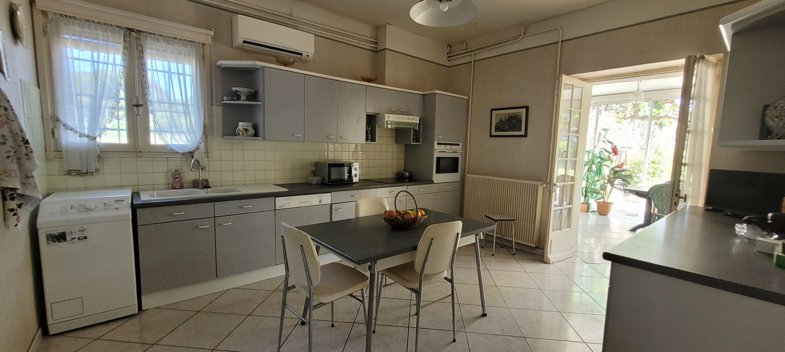 Au rez-de-chaussée, l'appartement indépendant se compose quant à lui d'une belle et spacieuse véranda, d'une cuisine indépendante, d'un salon, d'une chambre, d'une salle d'eau avec wc et placard.
