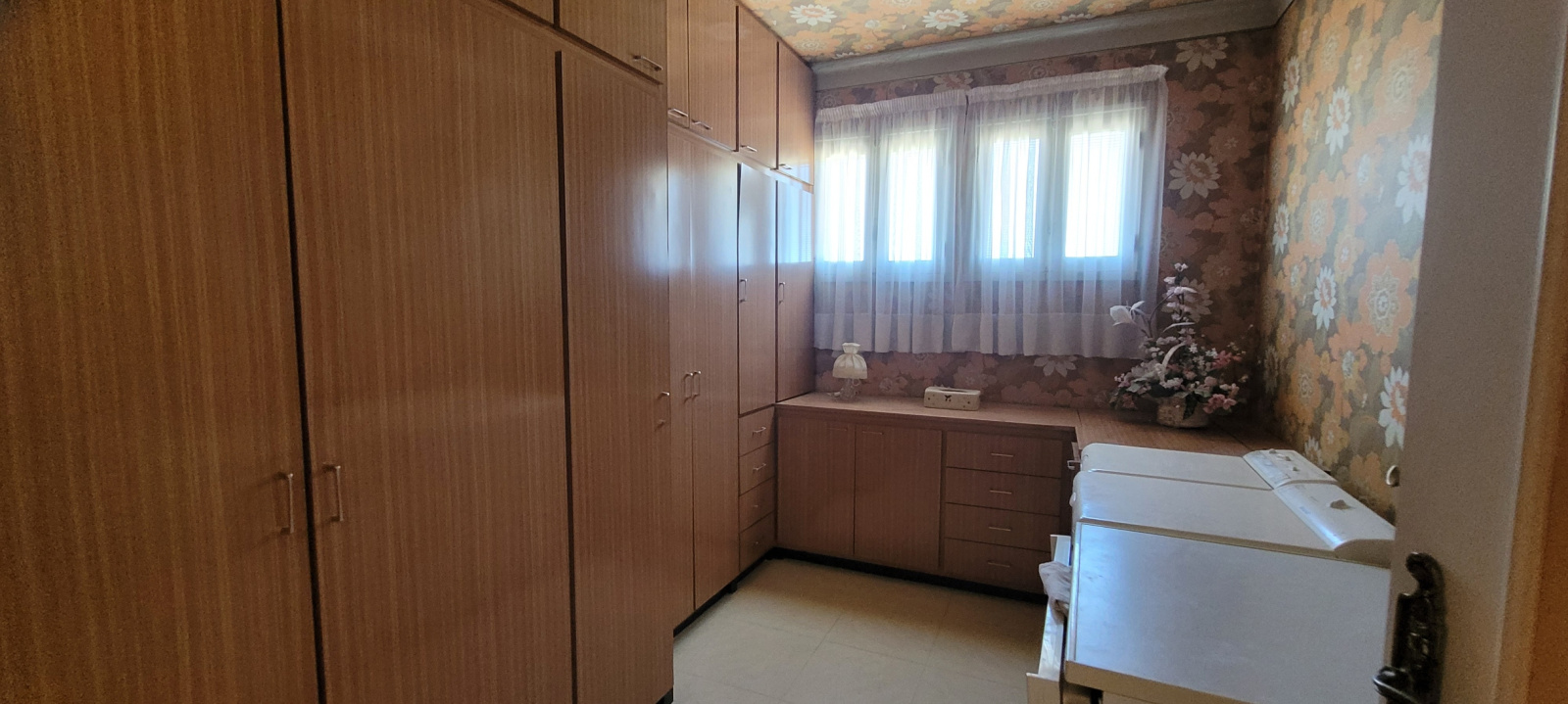 Dans le détail, le logement principal, situé à l'étage, au-dessus des garages, comprend sur un même niveau: entrée, salon-salle à manger, cuisine indépendante, véranda, 4 grandes chambres avec rangements, wc indépendant et buanderie.