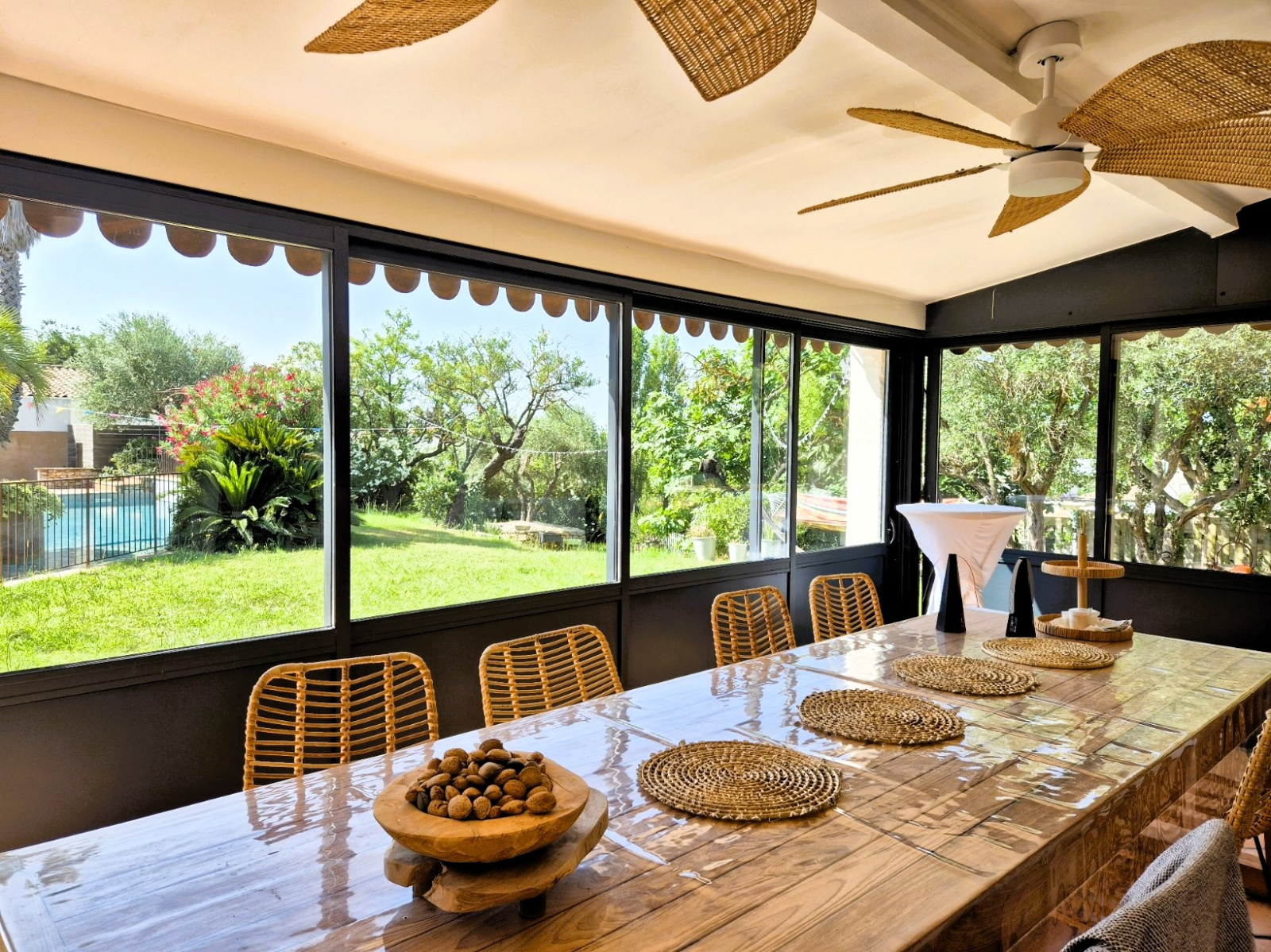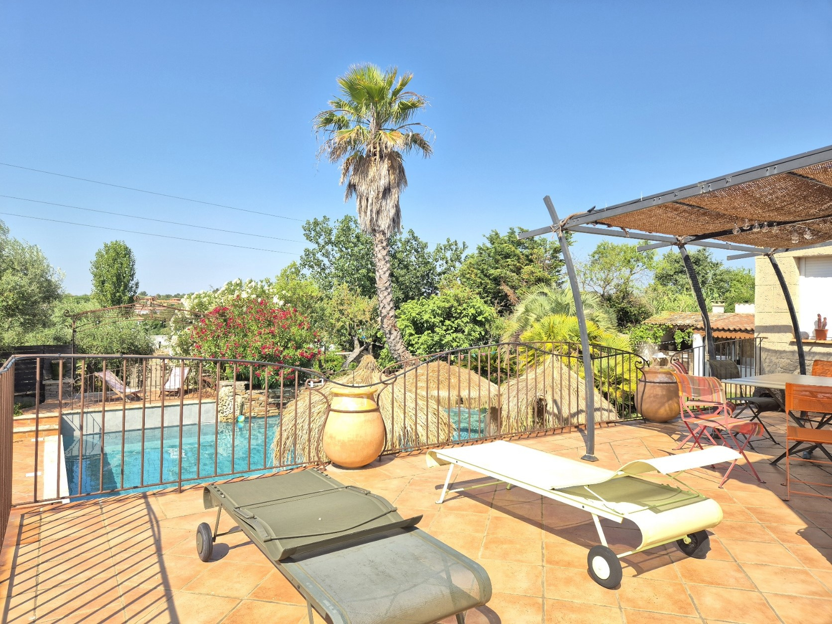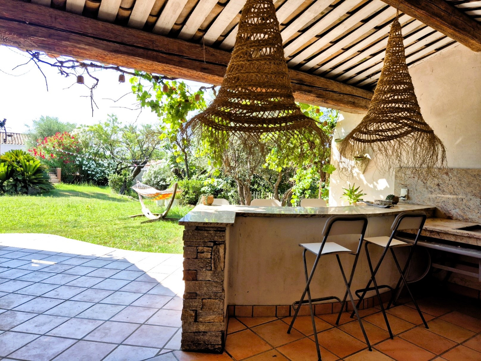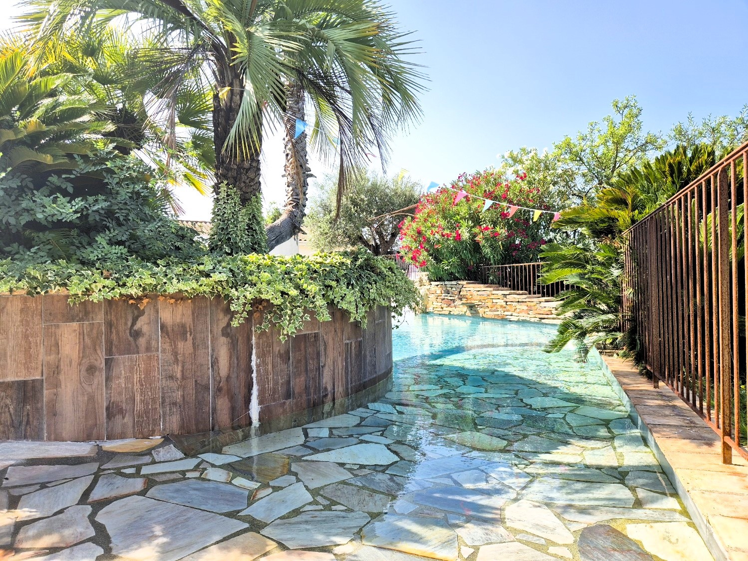 Les extérieurs vous réservent tout autant de surprises: à l'avant de la maison, des espaces de stationnements, un carport, un atelier/garage ouvert et un jardinet (qui abrite actuellement des tortues) . A l'arrière, l'extraordinaire piscine exposée Sud-Est, ses plages aménagées et son local technique, un superbe pool house incluant une véritable cuisine d'été, une salle d'eau avec wc et une pièce à usage de stockage, un espace barbecue avec un bar en granit, un jardin arboré aux multiples recoins ombragés et un terrain de pétanque.