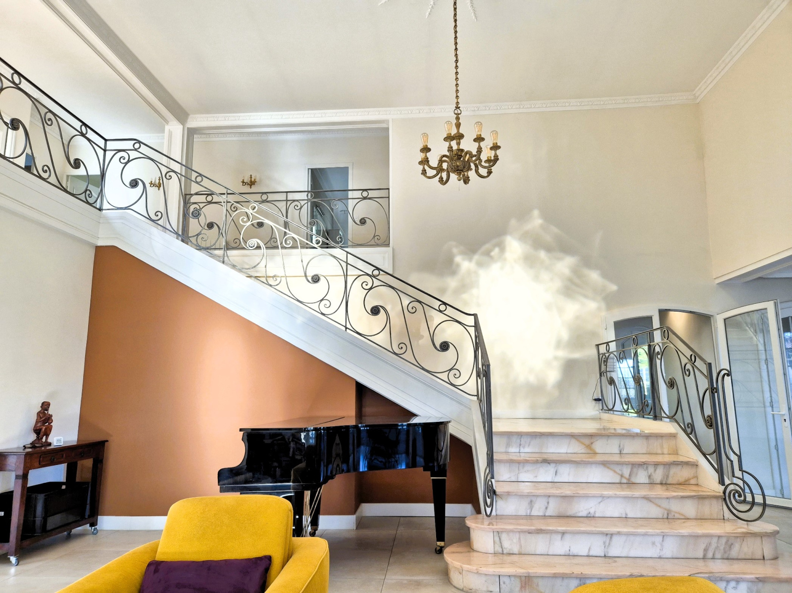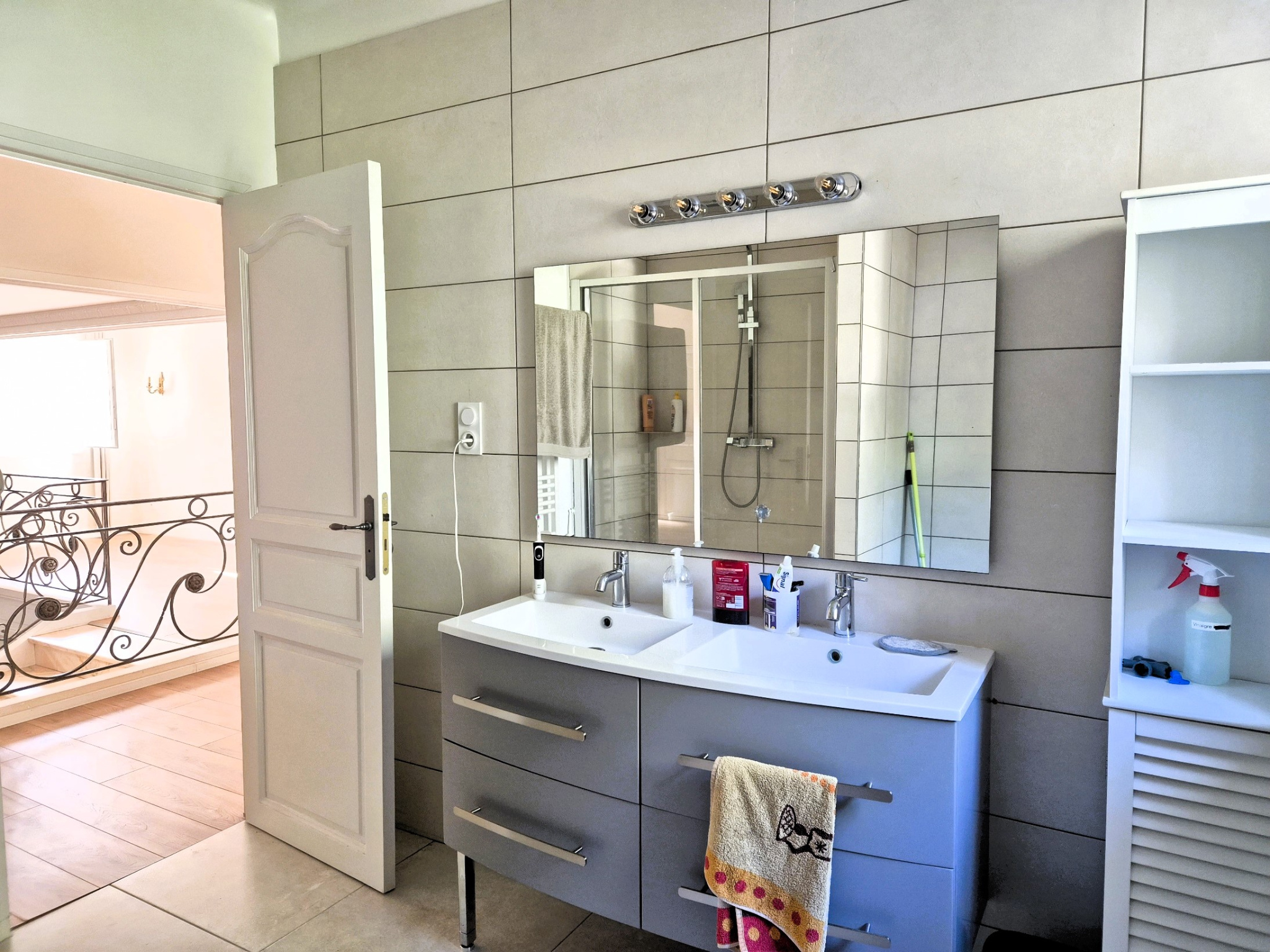 Offrant plus de 320 m² de surface habitable, elle comprend au rez-de-chaussée: une magnifique pièce de vie d'environ 85 m² dans laquelle trône une superbe cheminée, un 2ème salon actuellement à usage de salle de cinéma de plus de 35m², une grande loggia à aménager au gré de vos envies, une superbe cuisine aménagée et parfaitement équipée complétée d'un cellier, un wc indépendant avec lave-mains, une chambre avec salle d'eau privative en suite.