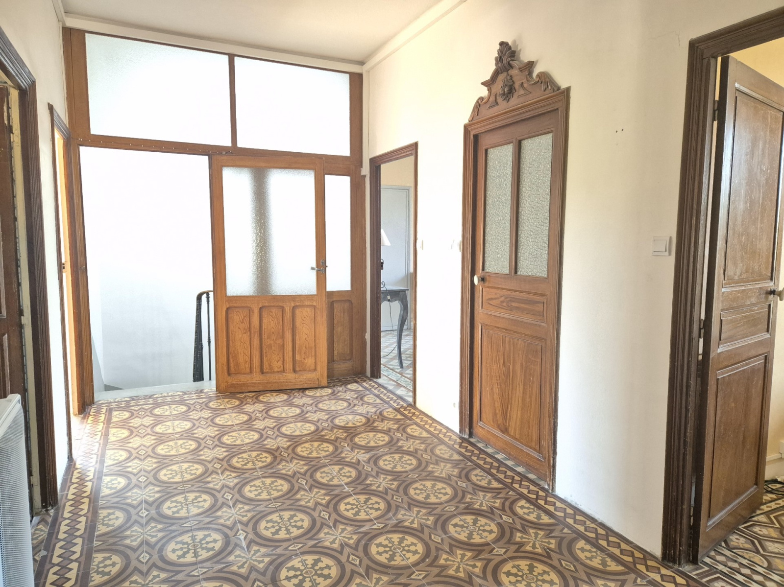 C'est au coeur du très prisé village de NEZIGNAN L'EVEQUE, à seulement 3 minutes de PEZENAS et 15 minutes des plages, que se dresse cette imposante maison vigneronne offrant une surface habitable de plus de 200m2, une splendide terrasse de pas moins de 100m2 et un immense garage d'environ 200m2. Au rez-de-chaussée, le ton est tout de suite donné par d'authentiques carreaux de ciment et un bel escalier sous lequel ont été aménagés des rangements. Au 1er étage (entièrement rénové): le hall dessert un beau salon orné d'une cheminée ancienne en parfait état de fonctionnement avec en face une belle cuisine équipée moderne, son arrière-cuisine et sa salle à manger en suite, lesquelles s'ouvrent sur la surprenante terrasse et sa vue dégagée. Un vestiaire, une grande chambre fraîchement rénovée, une salle d'eau moderne et un wc indépendant complètent ce niveau. Au 2ème étage, le hall orné de carreaux anciens dessert pas moins de 4 grandes chambres à rafraîchir, une pièce à usage de dressing à rénover, une salle de bain avec wc refaite à neuf et un grenier atypique qui surplombe la terrasse. EN BREF: 200m2 habitables, Rénovation récente, Carrelage ancien, Beaux volumes, Pompe à chaleur, Climatisation réversible au 1er, Panneaux solaires, Cheminée, Double vitrage, Isolation des combles, Grande terrasse, Grand garage traversant, Belle vue.. Et bonne nouvelle: les honoraires de 4,5% (inclus dans le prix affiché) sont à la charge de l'acquéreur, donc non soumis aux frais de notaire!