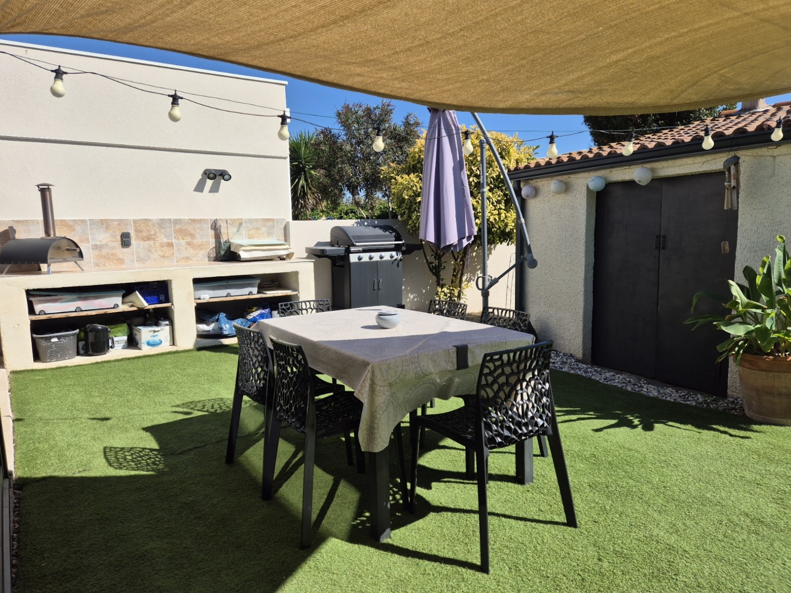 A l'arrière de la maison, la véranda donne sur un beau jardin entièrement aménagé et nécessitant peu d'entretien proposant plusieurs espaces dédiés à la détente et à la convivialité: terrasse cosy, barbecue, espace repas, piscine et local piscine avec grande capacité de stockage. Le tout, sans AUCUN VIS-A-VIS!