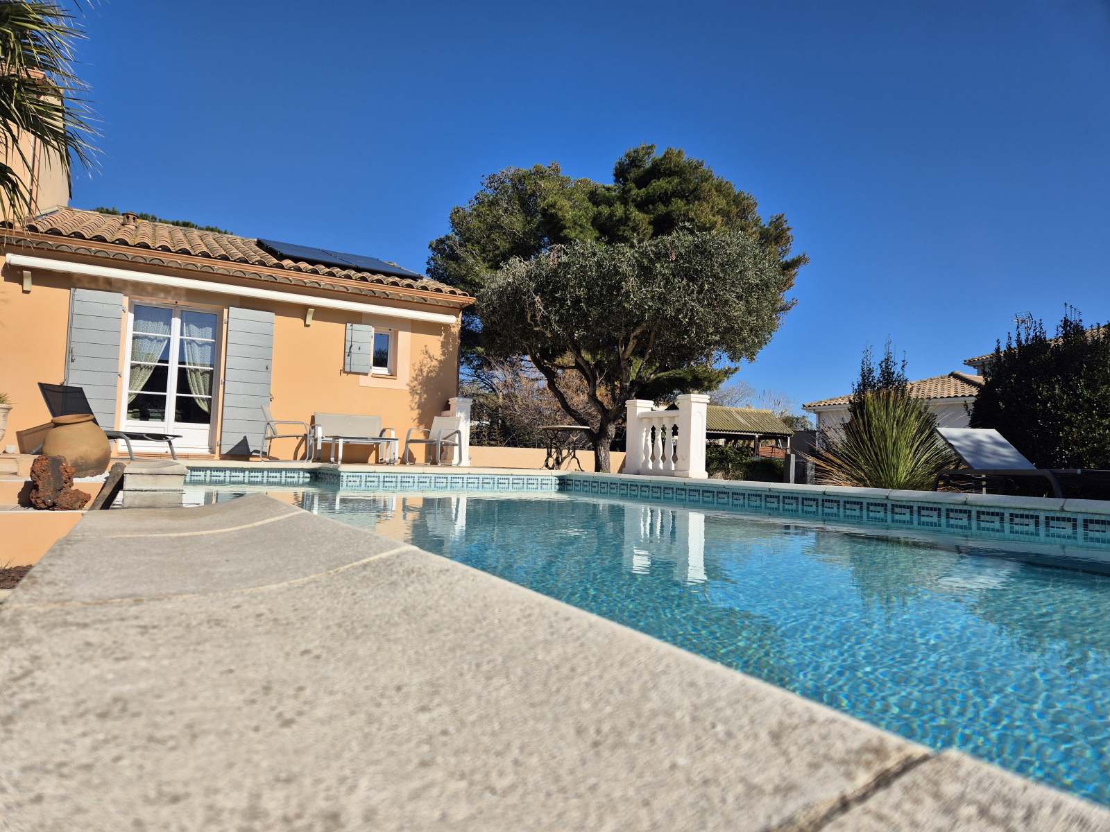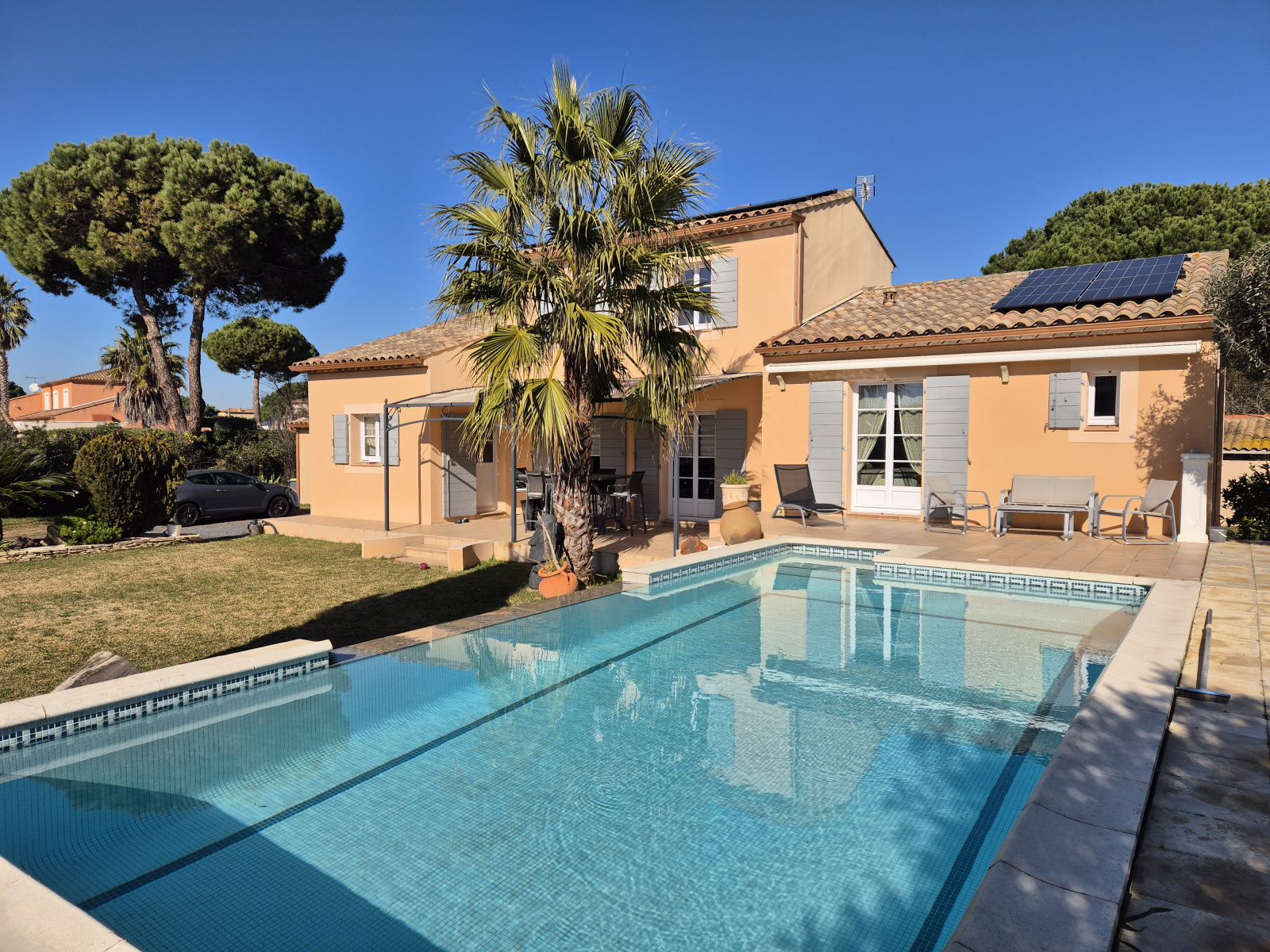 EN BREF: 5 minutes à pieds de la plage, état impeccable, belles finitions, double vitrage, climatisation réversible, panneaux solaires, isolation des combles, vide sanitaire de plus de 60 cm, piscine au chlore, stationnement de plusieurs véhicules possibles y compris un camping-car, portail automatique, forage utilisé pour la piscine et les wc, tout-à-l'égoût, arrosage automatique et semi-automatique,.. Sans oublier la possibilité de créer une douche dans la chambre sise à l'étage pour en faire une suite indépendante.