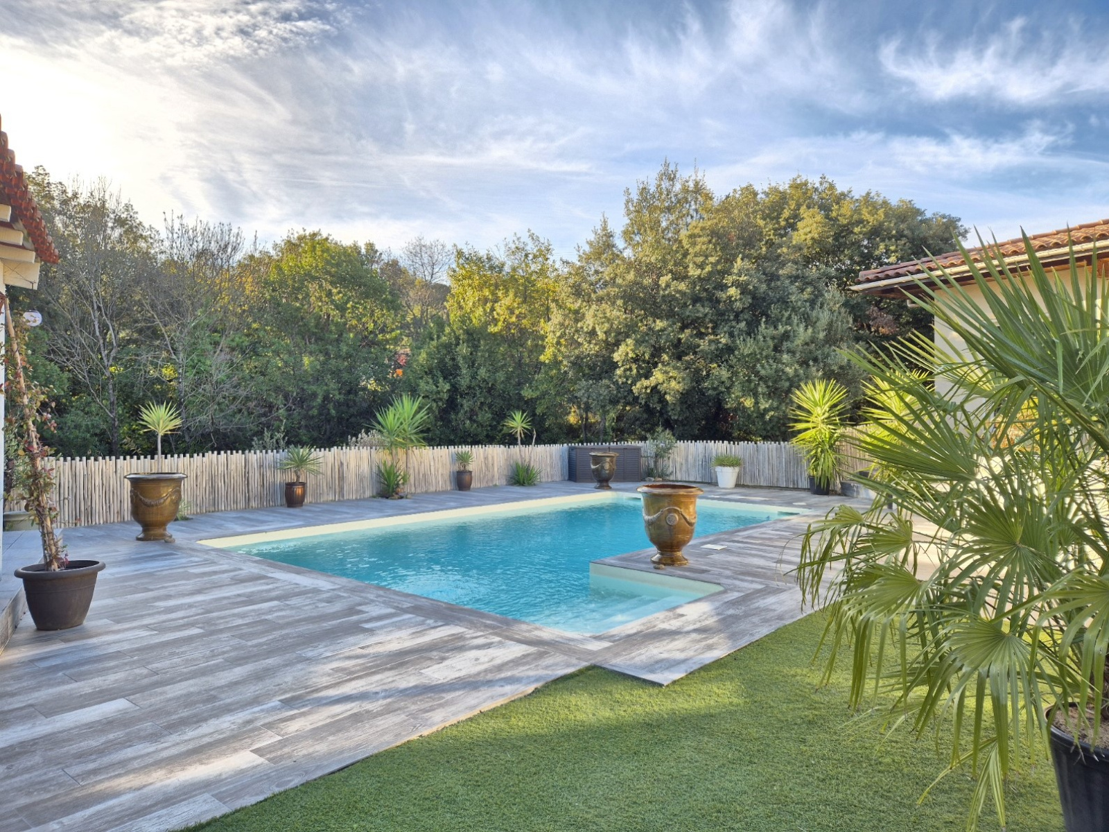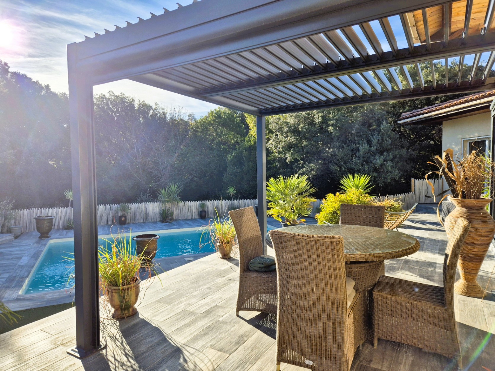 La très belle piscine à l'abri des regards, le pool house convivial et pratique, le terrain dédié à la pétanque et l'accès au charmant ruisseau situé en contrebas lui donnent un air de vacances permanent qu'on choisisse d'en faire sa résidence principale ou secondaire!