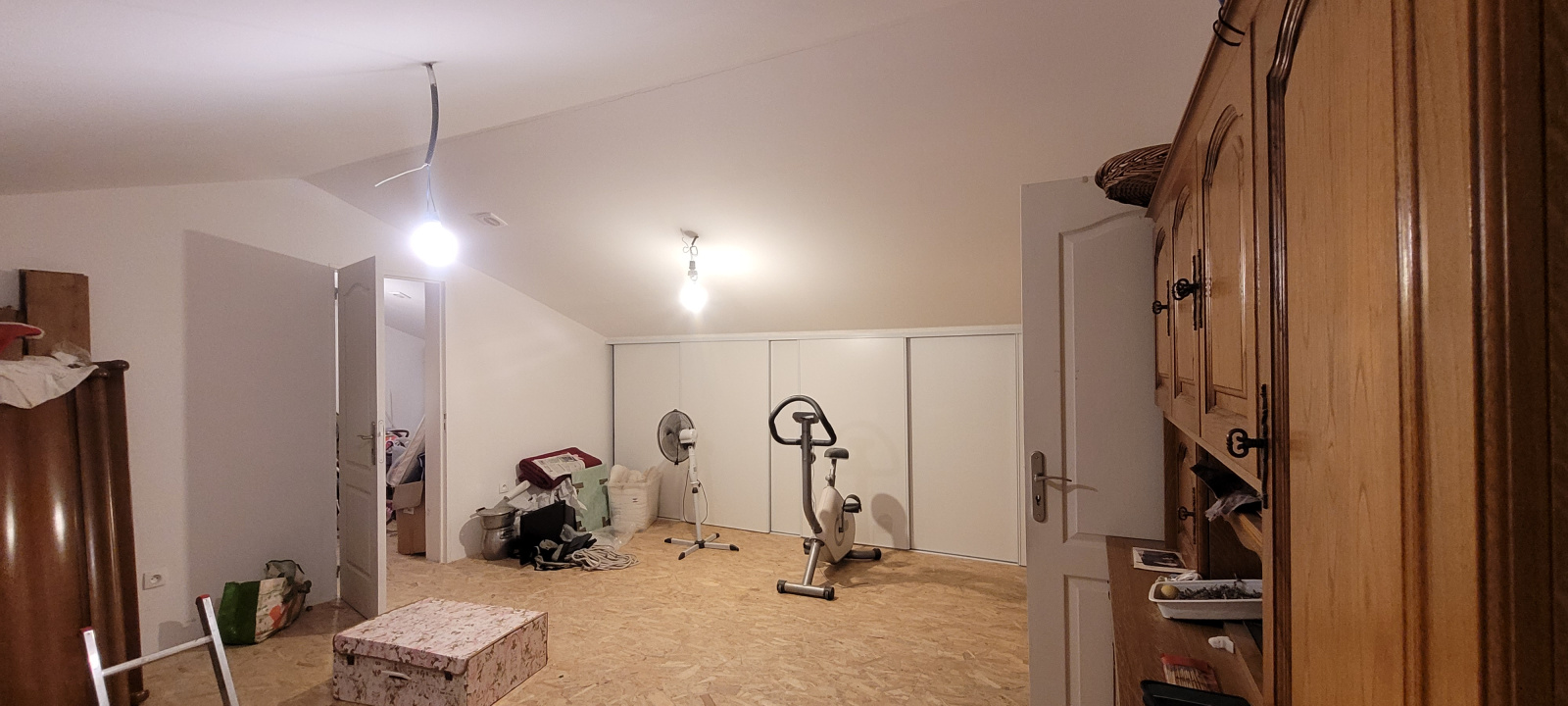 La maison est à rafraîchir mais présente beaucoup d'avantages et un énorme potentiel! En effet, une ouverture entre la cuisine et la pièce à vivre est tout-à-fait possible, les combles déjà isolés et alimentés en électricité ne demandent qu'à être aménagés pour créer une surface habitable de 50m² supplémentaire, le jardin est exposé au Sud et ne souffre d'aucun vis-à-vis .