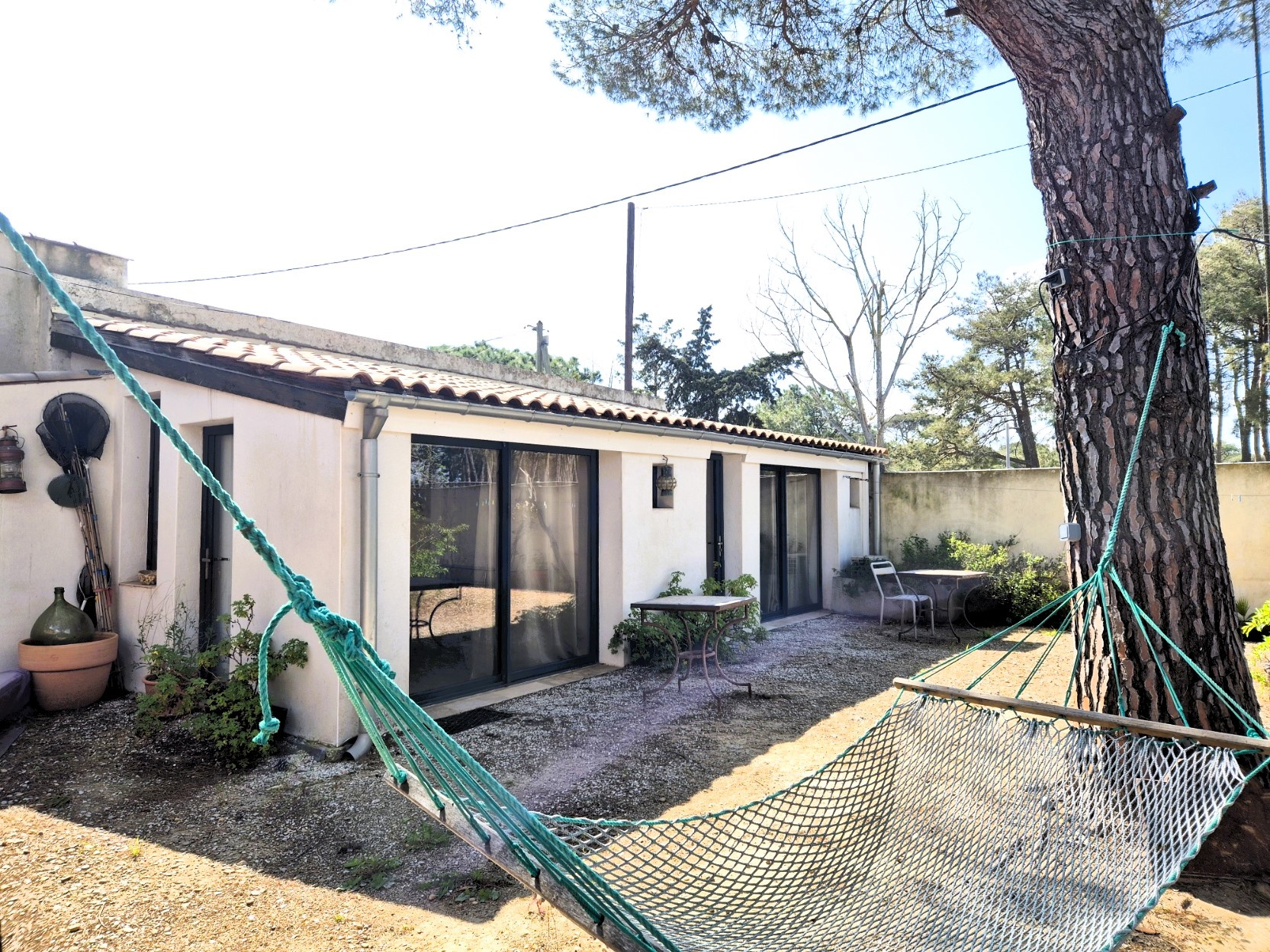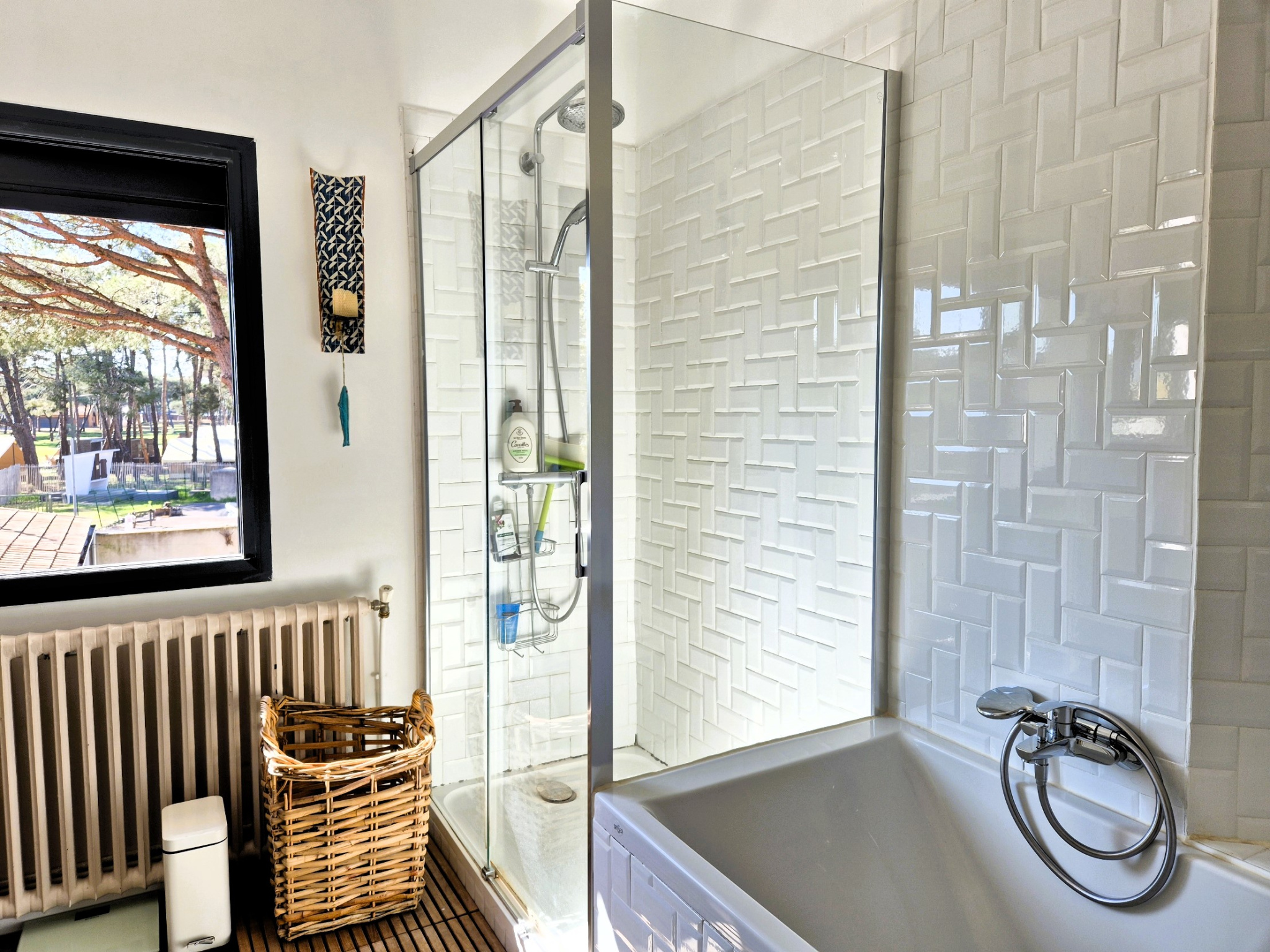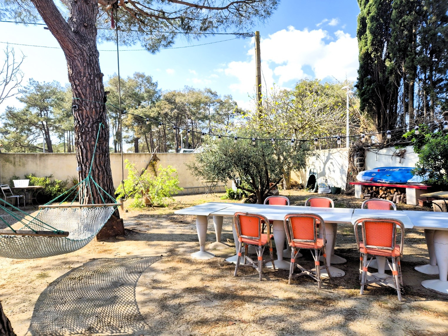Dehors, une cour dallée à l'avant de la maison permet l'accès au garage de plus de 20m² ainsi qu'à un appartement indépendant de type T2 . A l'arrière, un grand jardin clos propose une parenthèse de sérénité en accueillant repas conviviaux et moments de détente à l'ombre des grands pins.