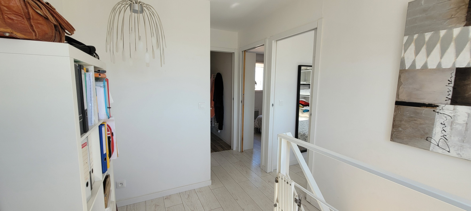 Un escalier moderne vous mènera à l'étage où un pallier très lumineux à usage de bureau dessert deux chambres supplémentaires de plus de 9m² chacune, une salle d'eau avec douche italienne et un wc indépendant.